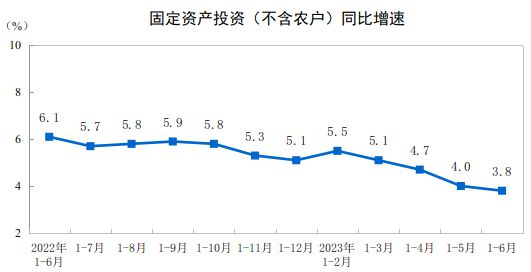 上半年,全国固定资产投资(不含农户)243113亿元,同比增长3.8%。分领域看,基础设施投资增长7.2%,制造业投资增长6.0%,房地产开发投资下降7.9%。全国商品房销售面积59515万平方米,下降5.3%;商品房销售额63092亿元,增长1.1%。